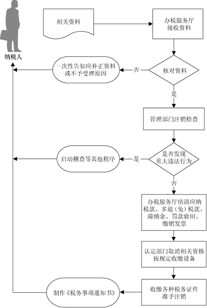 (6)收繳稅務(wù)登記證件、《發(fā)票領(lǐng)用簿》和其他稅務(wù)證件,即時(shí)核準(zhǔn)注銷稅務(wù)登記,制作《稅務(wù)事項(xiàng)通知書》交納稅人。