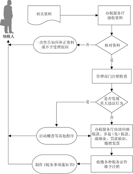 。5)收繳稅務(wù)登記證及副本、《發(fā)票領(lǐng)用簿》和其他稅務(wù)證件,核準(zhǔn)注銷稅務(wù)登記,制作《稅務(wù)事項通知書》交納稅人。