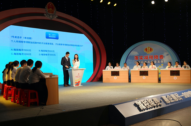 4月18日下午,由國家稅務(wù)總局梅州稅務(wù)局、梅江區(qū)稅務(wù)局聯(lián)合主辦,梅州市廣播電視臺(tái)承辦的2019年梅州市“減稅降費(fèi) 惠企惠民”稅收知識競賽決賽在市電視臺(tái)演播中心正式舉行。