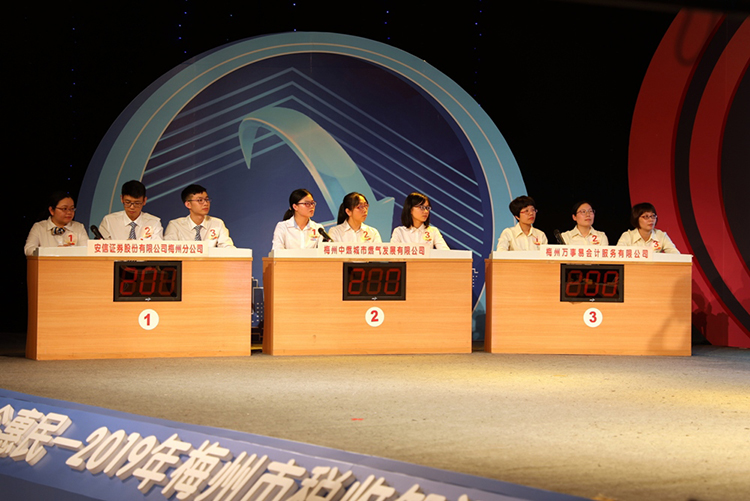 本次競賽在前期廣泛發(fā)動(dòng)梅江轄區(qū)內(nèi)3萬多戶納稅戶參賽的基礎(chǔ)上,選出各大行業(yè)代表組成18支參賽隊(duì)伍進(jìn)入初賽。經(jīng)過三場初賽的比拼,安信證券股份有限公司梅州分公司、梅州中燃城市燃?xì)獍l(fā)展有限公司、梅州萬事易會(huì)計(jì)服務(wù)有限公司、博敏電子股份有限公司、梅州智友企業(yè)管理服務(wù)有限責(zé)任公司、梅州市俊誠汽車銷售服務(wù)有限公司6支參賽隊(duì)伍進(jìn)入到今天的決賽。 經(jīng)過一個(gè)多小時(shí)比拼,梅州中燃城市燃?xì)獍l(fā)展有限公司以325的成績獲得了知識競賽第一名。梅州萬事易會(huì)計(jì)服務(wù)有限公司、梅州市俊成汽車銷售服務(wù)有限公司獲得第二名,安信證券股份有限公司梅州分公司、博敏電子股份有限公司、梅州智友企業(yè)管理服務(wù)有限公司等3支代表隊(duì)伍獲得第三名。